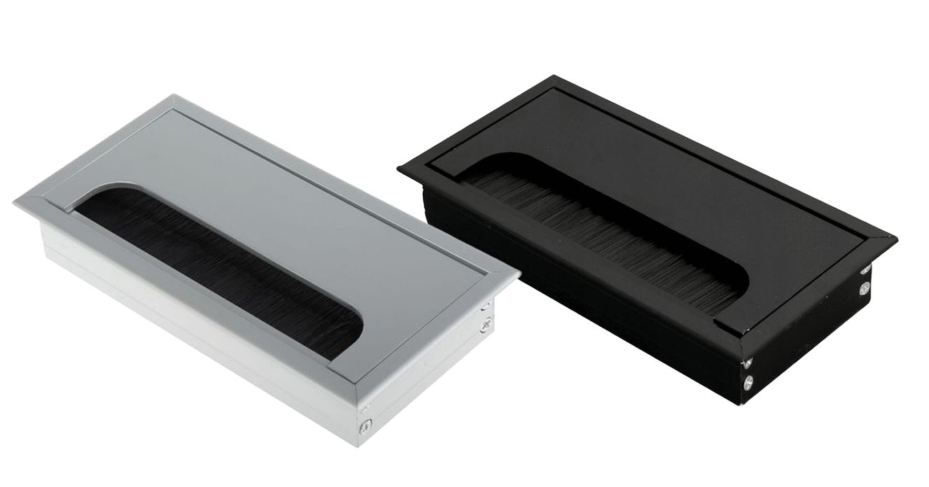 Crafted in durable materials such as brushed aluminum, ABS plastic, or steel with optional soft-close covers(flip lids) together with brushes. Rectangular grommets are designed in various sizes and finishes to seamlessly match various office desk design.