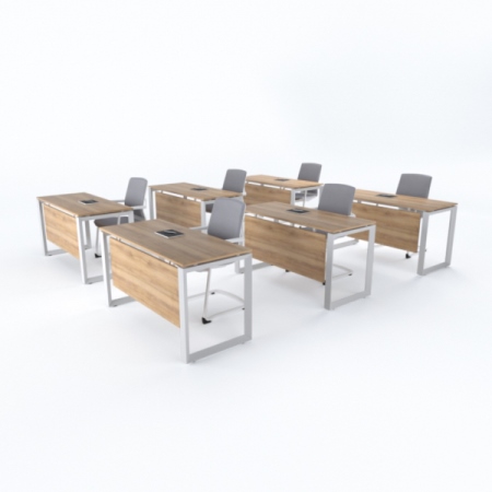 DIAMOND – Meeting Table (Conference/Training Convertible) is an adaptive u-shaped furniture innovation manufactured in Dubai. Its perfectly engineered for performance yet still super flexible in modern workspaces hosting meetings, trainings and team collaborations. In a modular set of 6 rectangular tables forming a U-shape, each features a H3700 Natural Pacific Walnut Egger Laminate MDF worktop with antibacterial surface property. At their base, each supported by durable white powder coated steel frame and legs for prolonged corrosion resistance while maintaining sleek aesthetics. Currently available for online sale in custom dimensions of 140L*60W cm, 160L*60W cm and 180L*60W cm per table.